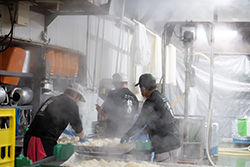 名水で知られる遊佐町。霊峰鳥海山の氷河を源流とする清冽な伏流水(中軟水)が、酒蔵の地下にも脈々と流れています。杉勇の酒は、このやわらかでまろやかな口当たりを生み出す良質な水で、寒の時期に仕込みます。