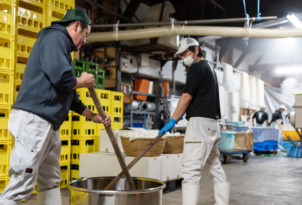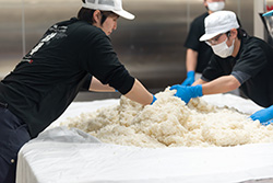 酒造りで重要な麹は蓋麹法による手作り。蔵人の勘と経験によりその年ごと違う酒米の性質を見極め、丹念に仕込みます。酒母は近代的な速醸のほか、一部製品では伝統的な「山卸」を取り入れた生酛造りでの醸造を採用。手間と時間をかけたコクのある酒も生み出しています。