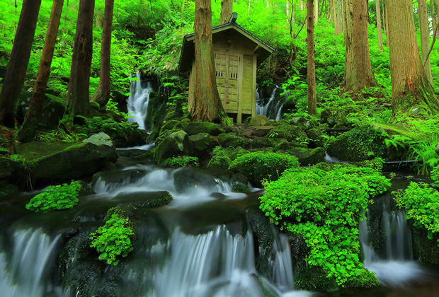 遊佐町にある鳥海山の伏流水が斜面から吹き出す滝